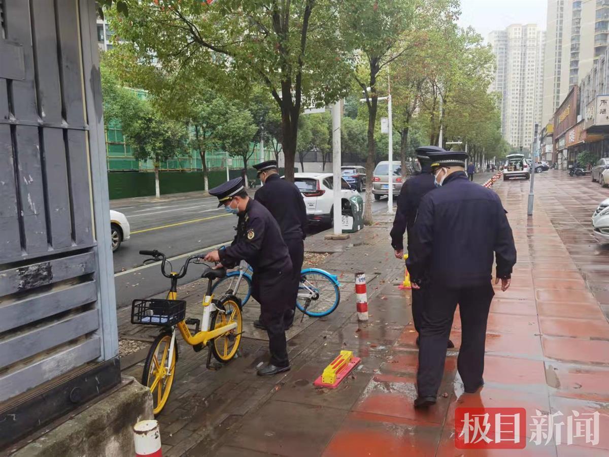 两个区城管执法队员联手对道路沿线的出店经营行为进行整治,除了劝导,还主动帮助摆放,做好服务,将乱停乱放的共享单车、电动车进行规整。经过几个小时的整治,两条道路沿线变得井然有序。