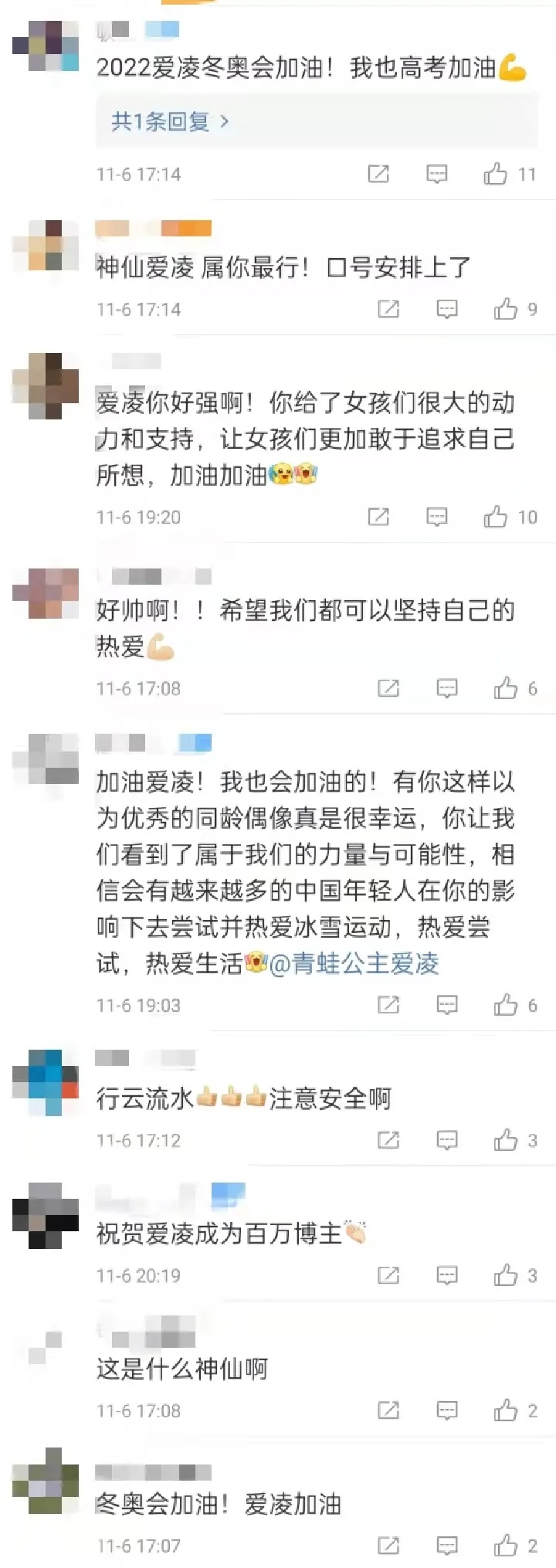 在配文中,她两次提到“热爱”二字,这便是谷爱凌,对自己心爱的滑雪,她永远充满热情。