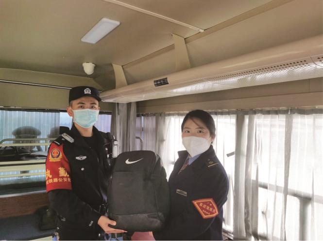次日,C9123次列车员在拿到由车站值班员转交的背包后,向民警连连道谢,称赞民警这么快就将自己丢失的背包找了回来。