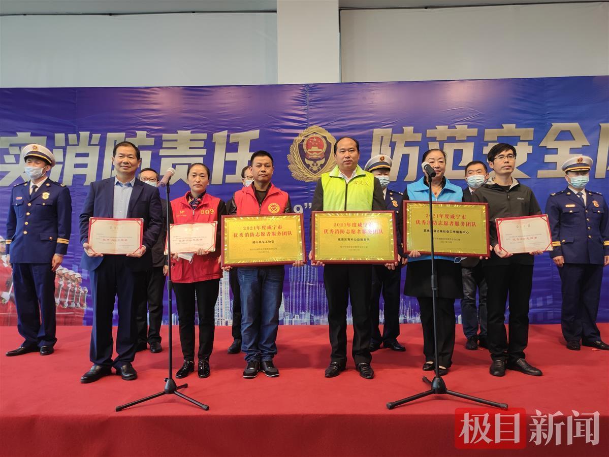 启动仪式现场,3名咸宁市2021年度优秀消防志愿者、3名优秀消防志愿者服务团队代表获得表彰。“此次活动,旨在广泛动员社会各界关心消防救援队伍、关注社会消防安全,大力普及消防法律法规和消防安全知识,进一步提高群众的安全意识和自防自救能力。”启动仪式现场,咸宁市政府副秘书长鄢文军如是说道。