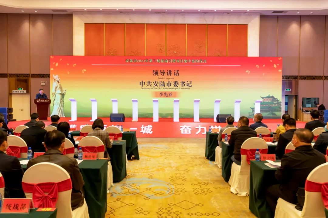 11月7日,安陆市举行2021年第三轮招商引资项目集中签约活动。年产1万吨高性能电子铜箔、年产225套智能高速瓶盖模压机、绿沃川智慧农旅、高端铝合金新型材料等31个项目成功签约,合同引资额56.2亿元。