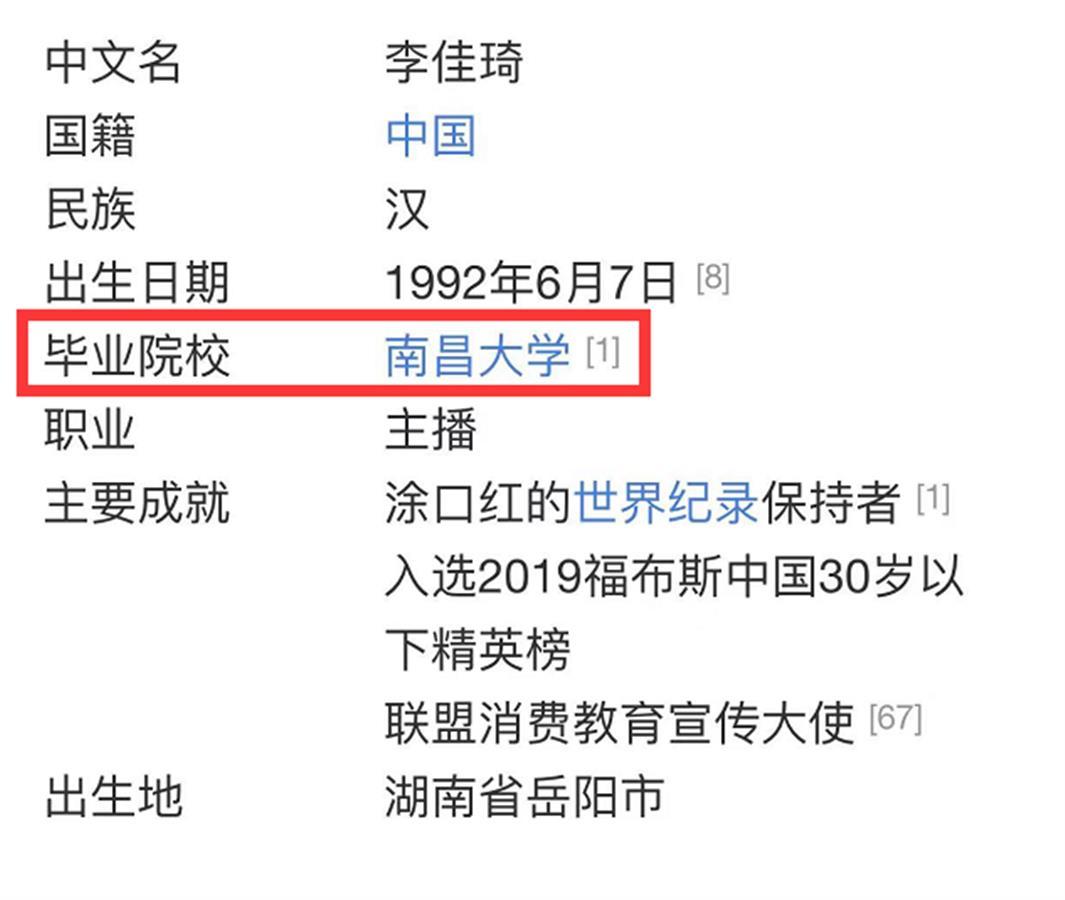 李佳琦的早期经历,早已成为网络上津津乐道的励志传奇。而他是南昌大学毕业一事,对于众多粉丝来说,也早就是铁板钉钉的事情。不仅很多报道中提及,南昌大学也多次热情地表达过对李佳琦校友的欣赏。今年5月,南昌大学办学100周年时,李佳琦还作为优秀校友,为其录制了祝福视频,发布在学校官方微博上。所以,网传的公示材料上,“高中学历”四个字,让很多网友感到迷惑:究竟是公示材料弄错了,还是南昌大学认错了校友?
