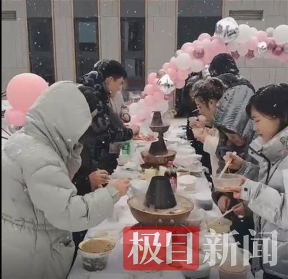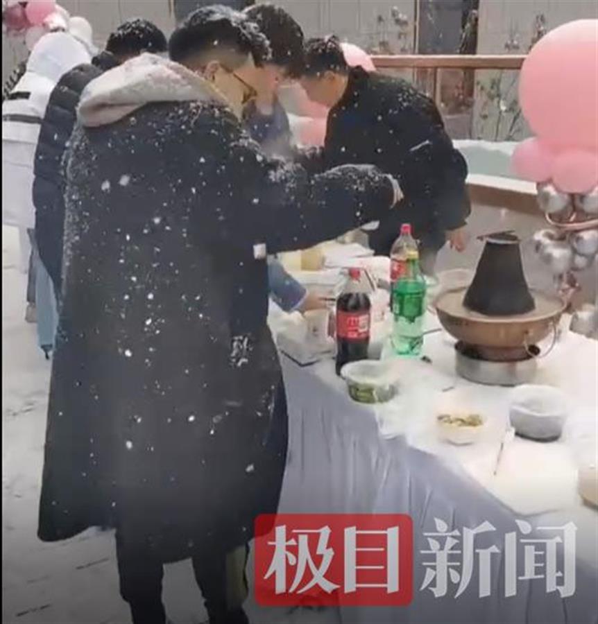 11月9日,雪中吃火锅的视频拍摄者左先生告诉极目新闻记者,这件事情发生在11月8日中午,公司领导看大家加班很辛苦,就组织一起吃火锅。左先生介绍,本来是搭好了棚子,没想到被大雪压坏了,同事们也想赏雪,于是大家便在雪中边赏景边吃起火锅。左先生介绍,当时有30人一起在雪中吃火锅,大家感觉挺开心。