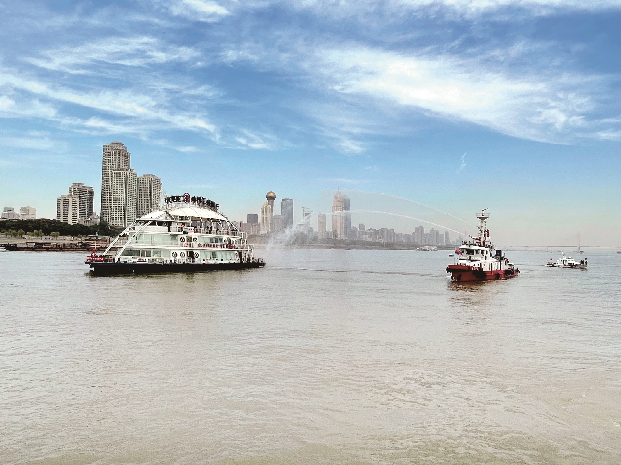 “不好!江中船上着火了!”随着船长九号的呼救声,水手们立即跑到甲板开展施救工作。11月9日是全国第30个消防宣传日,当天上午10时许,长江航运公安局武汉分局联合武汉海事局、长江海外旅游公司在武汉港区开展“119”消防日主题宣传活动和灭火救援演习。