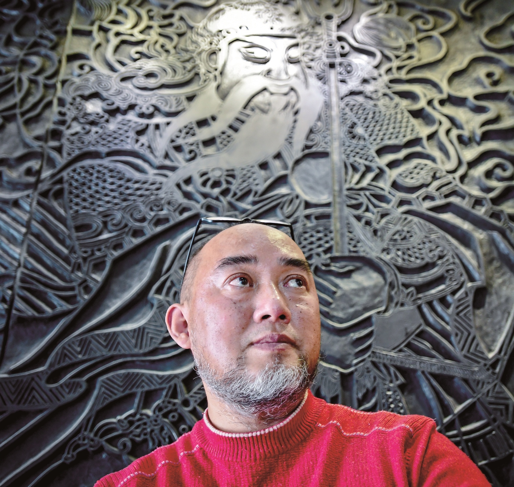 在工作室内,记者看到一幅巨大的汉派木刻作品《财神》。朱明介绍,作品长2.4米、宽1.6米,耗时一年才完成。记者注意到,作品线条走向婉转、流畅,造型栩栩如生、活灵活现。