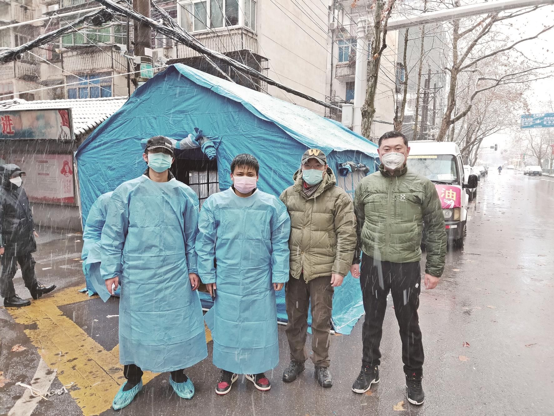 从部队转业的徐宏博,依然保持军人本色。2019年底至2020年初,他在江汉区华南海鲜市场帮助疏散商铺人员,协助消杀人员清洗市场环境;武汉市各类医疗物资短缺,他带领车辆到东西湖区转运;为保障外地医疗救护队日常保障用品,他开着自己的车一趟趟往返于应急仓库与酒店之间;为保障社区一线值守人员能有避风躲雨的值守点,他冒雪给社区搭建应急救灾帐篷……