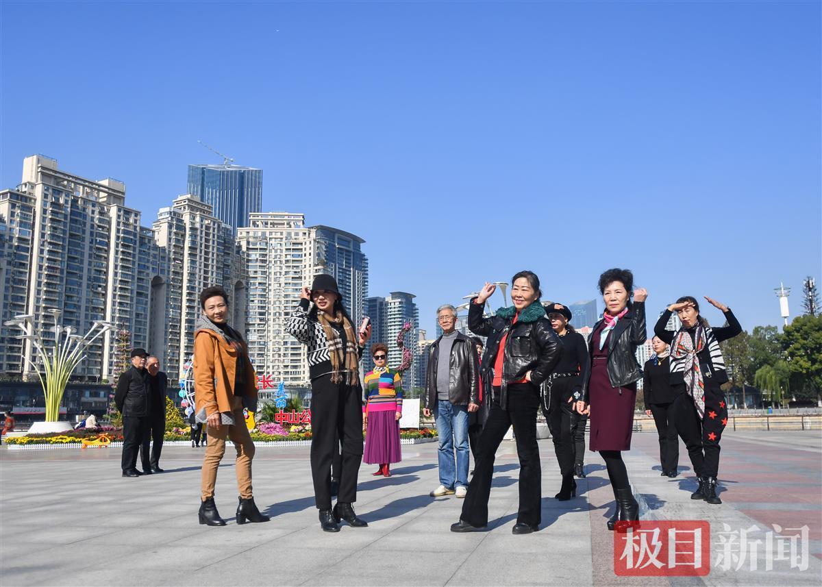 2021年11月11日,武汉天气晴好阳光和煦,在汉口西北湖广场上一群中老年模特走起“猫步”。随着柔美的旋律、起步、转身、个个腰板笔挺,充满活力。没有璀璨的灯光,也没有热烈的掌声,但大妈、大叔们依然一丝不苟,吸引了众多市民驻足观看。据团员黄女士介绍,他们都是某老年艺术团的成员,由来自各行各业的退休人员组成,每个星期都会来这里练习时装秀。