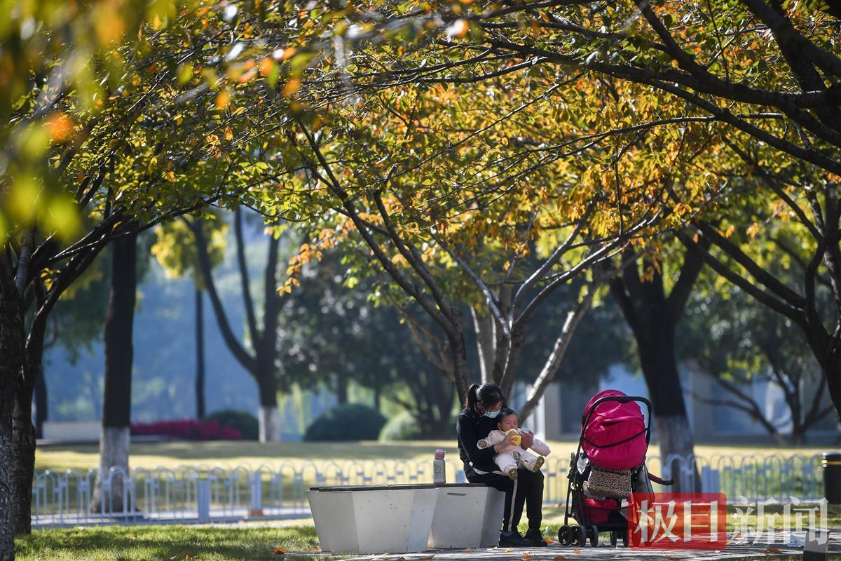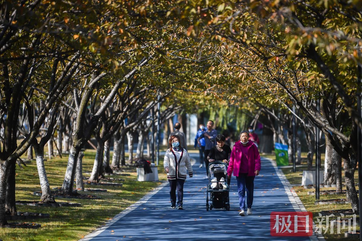 2021年11月11日,立冬以来,连续多日的晴好天气,让武汉的清晨也变得明媚了许多。汉口黄孝西路一侧林荫步道树影斑驳,阳光透过树叶洒下金色的光,呈现出不同的光晕、形态和色彩。三三两两的游人漫步在曲曲折折的小径上,闲走观景、坐晒暖阳。孩子们奔跑、大人们谈笑,尽情地享受着难得的冬日阳光。
