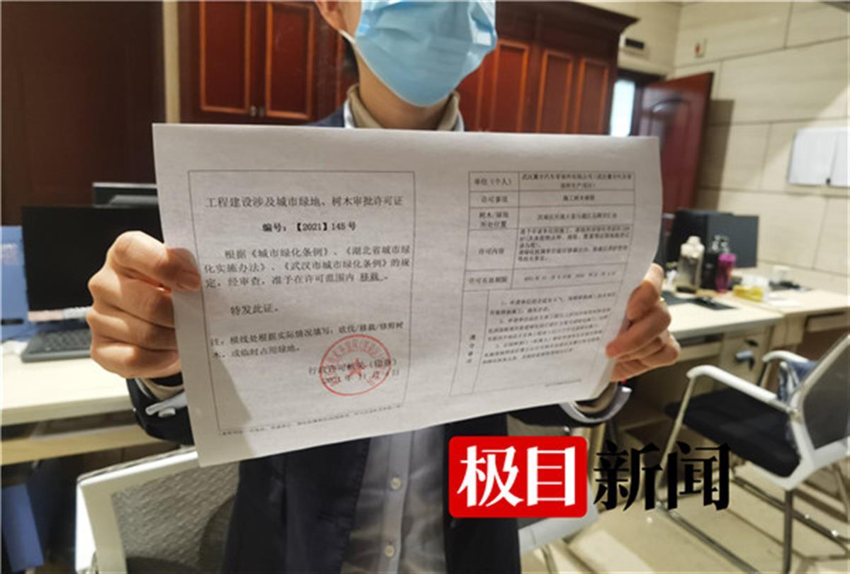 韩先生告诉极目新闻记者,上周,他提出要办理以上业务,徐飞在线上向他一一告知需要准备的文件资料。“今天过来一趟,10分钟全部都搞定了。”韩先生说,当天,他不仅办好了树木移动的许可,还听从徐飞的建议“跑一次腿,办多件事”,同时提交项目发包备案的相关资料。