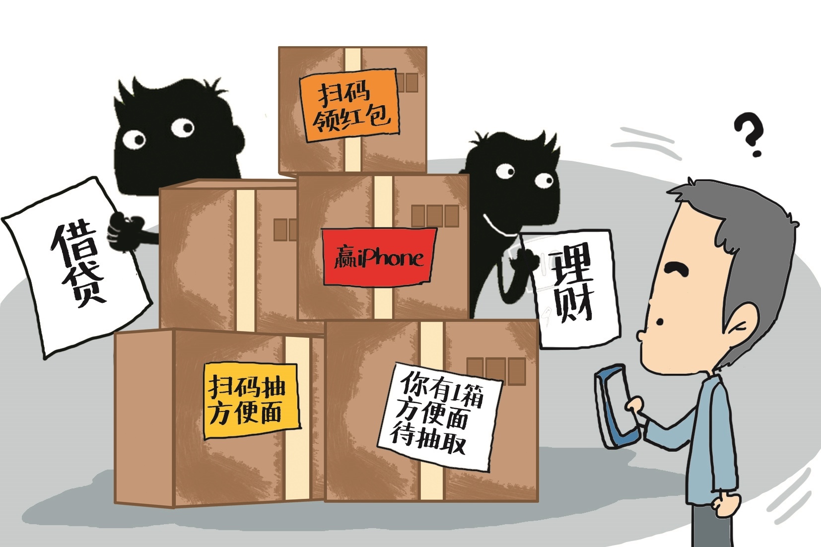 骗你有奖品,还可能是iPhone,有些甚至直接说扫码领红包,奖品、红包,谁不想要?防范意识稍微低一点,就可能上套扫码了,再稍微不注意,自控能力差点,就忘了风险,下手贷款、买理财了。
