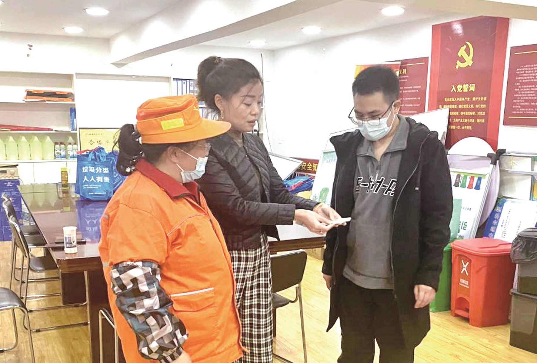 10日中午12时,武汉江岸环卫集团岸一清公司环卫女工程福华,与往常一样在吉庆街上进行清扫保洁作业。她扫到德润大厦附近时,发现前面一个240升的垃圾桶旁,有个拆开的快递纸盒,纸盒内的泡沫散落在地上,程福华随即上前将泡沫清扫干净。