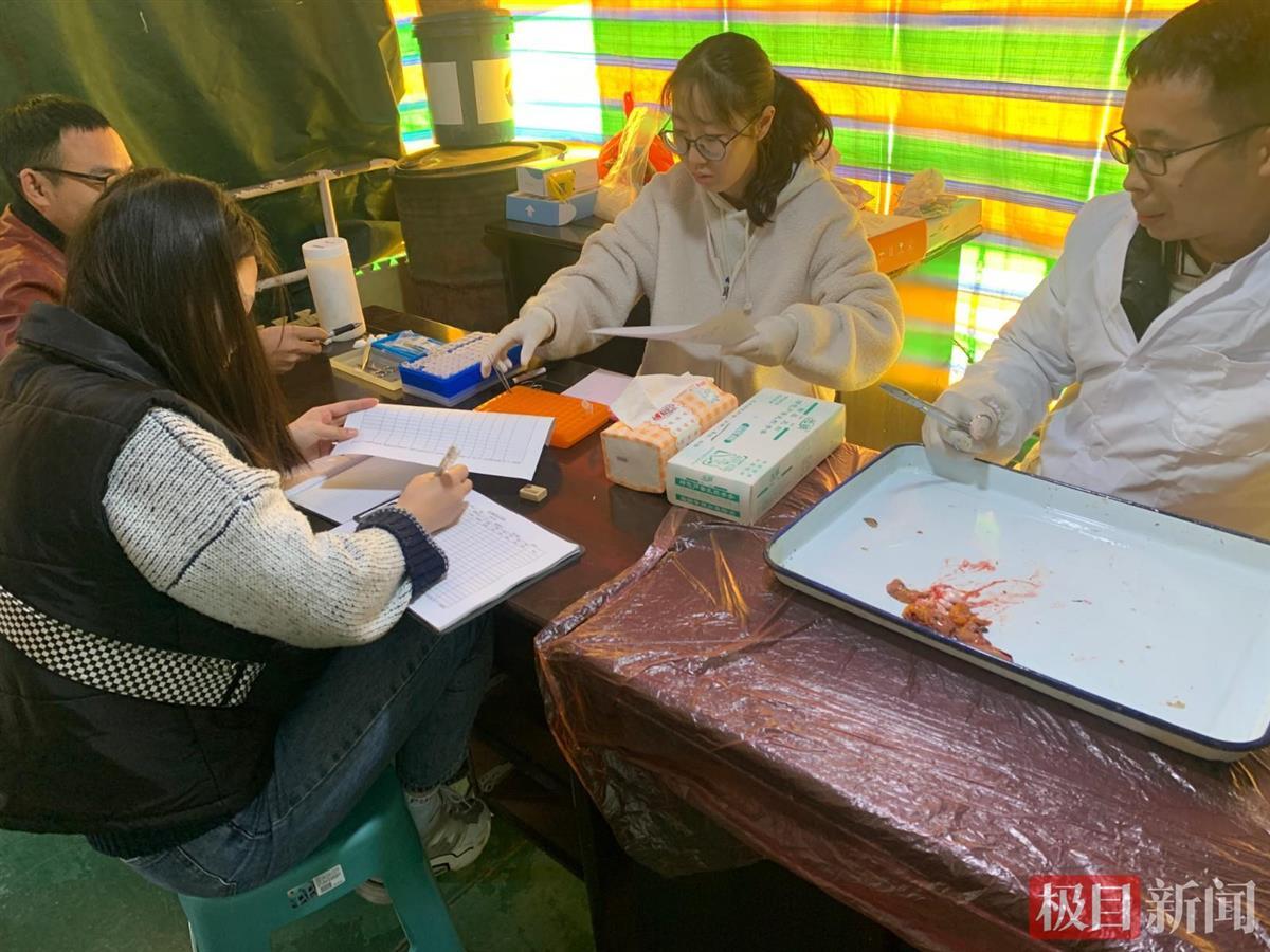 科考人员解剖食卵鱼