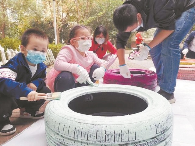3日,社区再次组织居民打造花园,20多位居民对废旧轮胎进行改造,大家手拿颜料、笔刷、水桶、颜料盘等,为废旧轮胎进行改造、上色,五颜六色的颜料被笔刷涂鸦在轮胎上。经过近1个多小时的创作,一件“艺术品”诞生了。随后,工作人员和参与活动的居民将经过改造上色的轮胎放到绿化带里,小花园顿时让人眼前一亮。“变废为宝,很有意义。”居民李先生表示。目前,这处小花园,已经成为居民们心中的“网红”打卡地,来这里锻炼的居民也增加了不少。