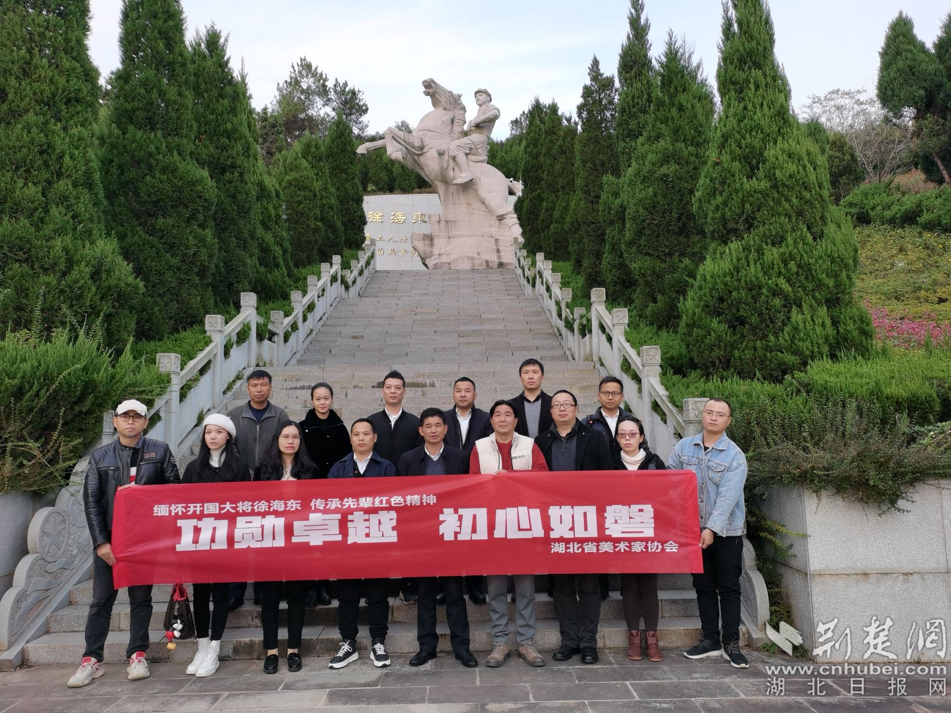 荆楚网(湖北日报网)讯(通讯员易荣波、龚红焰)11月9日,湖北美术学院、华中科技大学等6所高校9名书法家来到徐海东大将及亲属烈士纪念馆,参观瞻仰徐海东大将事迹,向徐海东大将雕像敬献花篮,接受革命传统教育,现场采风。