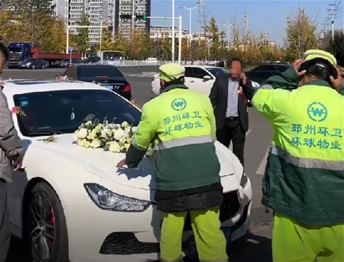 近日,有社交平台用户发布了一则江苏邳州环卫工拦婚车要“喜钱”的视频,引网友热议。11日下午,邳州市环境卫生管理处工作人员告诉极目新闻记者,经调查,当时环卫工是为了不让相关人员在路面使用手持礼炮,并非要“喜钱”。