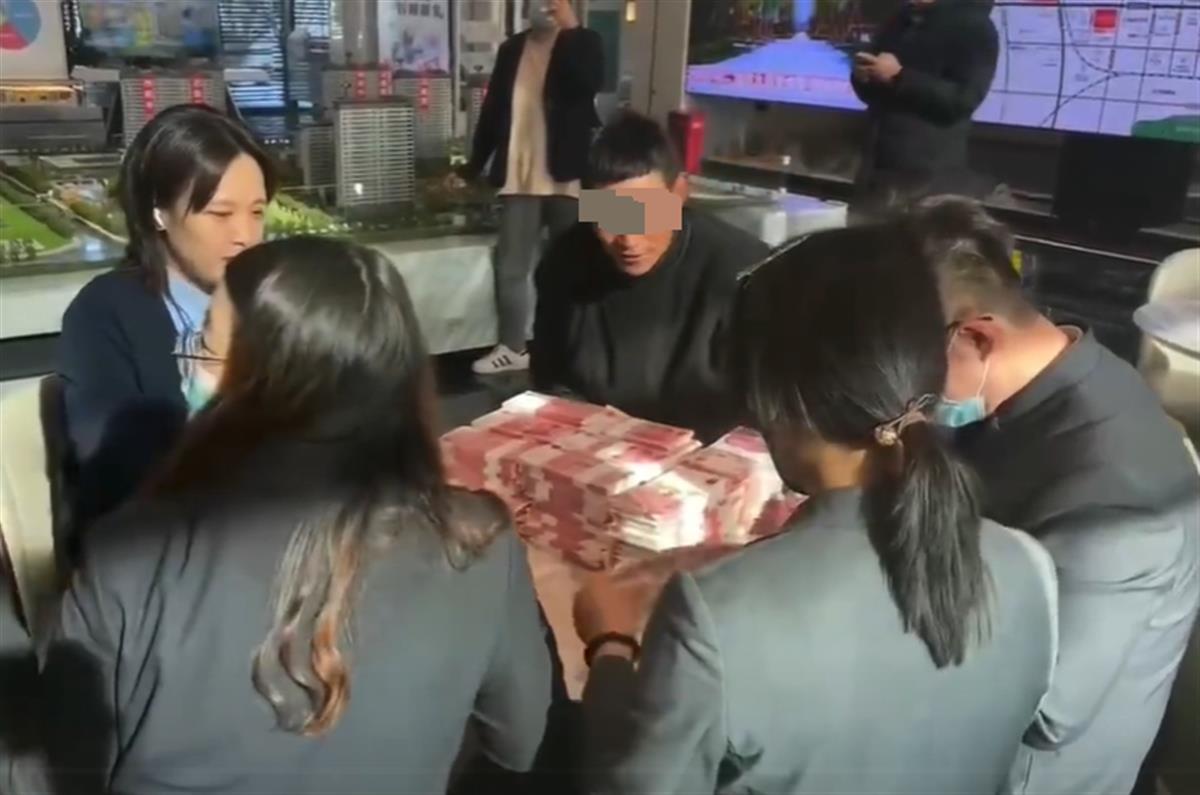 赤峰一位居民宋女士告诉极目新闻记者,11日下午她收到朋友发来的一段视频,视频中一名男子穿着一身黑色长袍,骑着一匹高大的黑马停在一家楼盘的售楼部前,男子下马时还提了一袋装有现金的编织袋,随后走进了售楼部。另一位居民陈先生则称,男子骑马并提一袋现金去买房的视频已在他的微信朋友圈刷屏,视频中现金堆满了整张桌子,不少工作人员都在数钱,对此大家都感到不可思议。有网友调侃:“小区配马棚吗?”还有网友打听:“有对象了吗?”