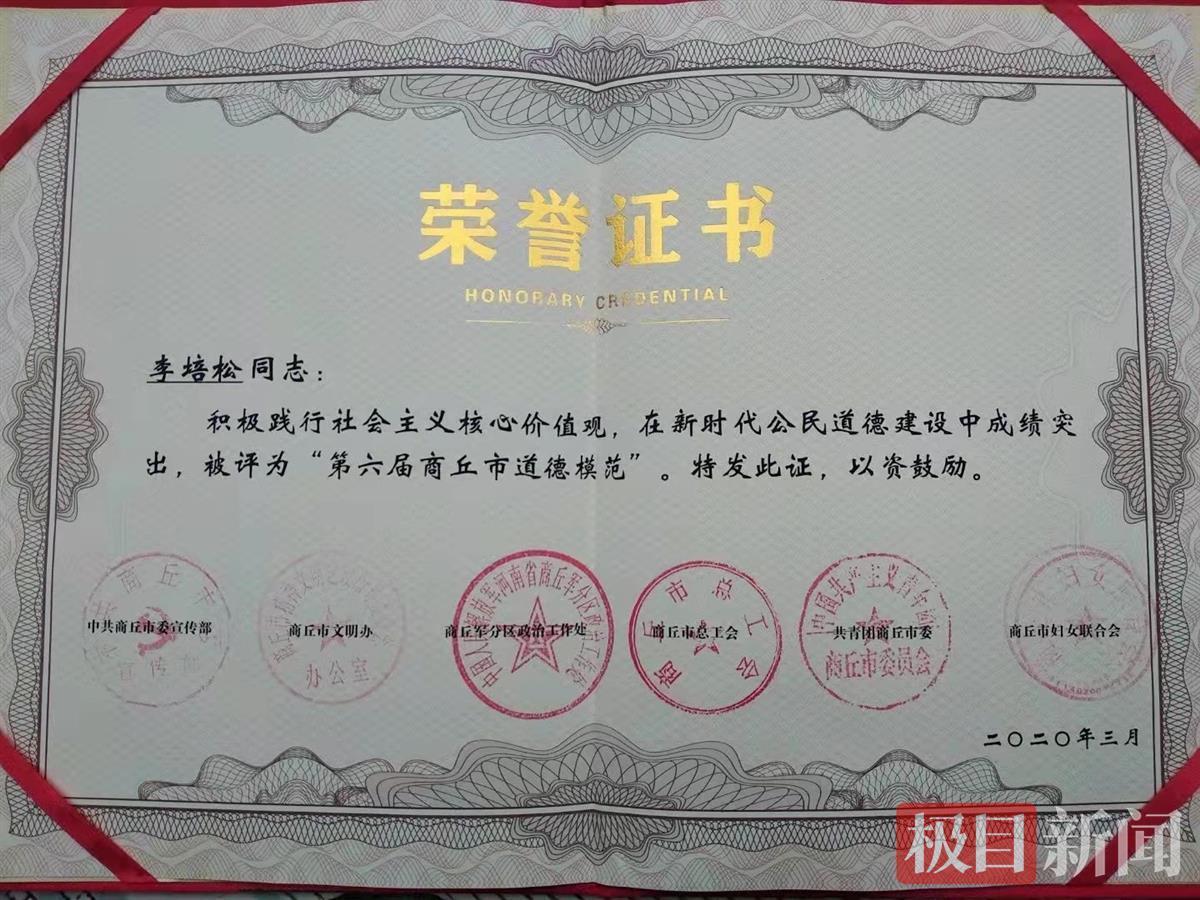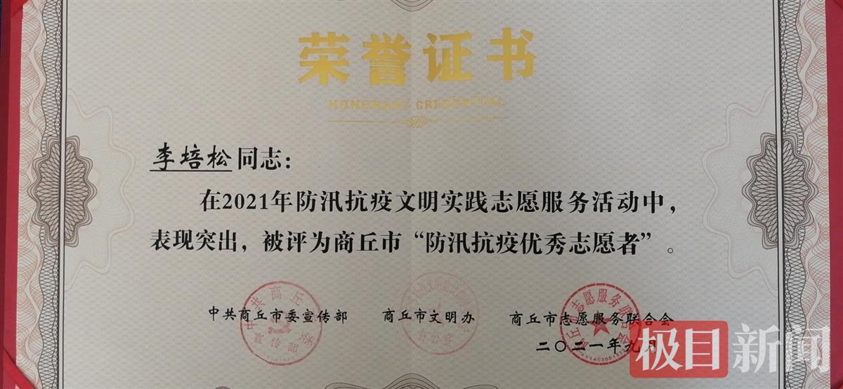 极目新闻记者获悉,李培松还是商丘市水上义务救援队的成员,现为救援队梁园区分队副队长。2008年,他和朋友们就自发成立了这支救援队,专门负责商丘范围内的水上救援、防溺水宣传及自救措施讲解推广。