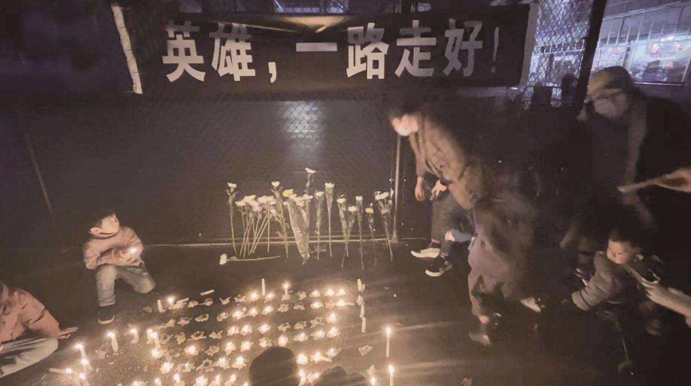 13日晚,安徽蒙城县有百姓自发来到陈建军牺牲的地方,祭奠送别这名消防英雄。