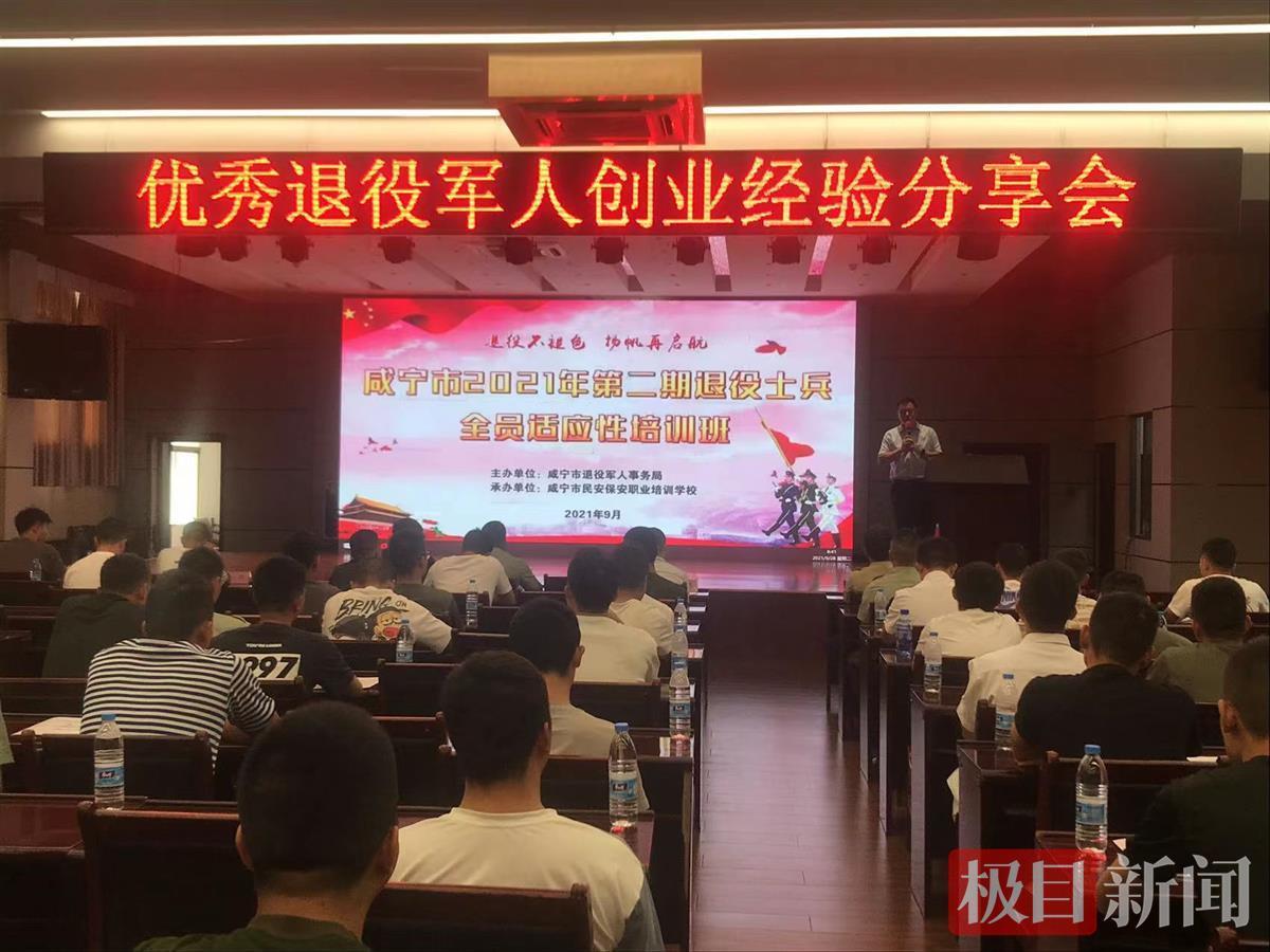 极目新闻记者从咸宁市退役军人事务局了解到,9月中旬以来,咸宁市在托湖北科技学院和咸宁民安保安职业培训学校,举办2021年度退役士兵全员适应性培训班,此次培训分2期举行,每期3天,近400名退役军人参加了此次培训活动,培训主要采取理论授课、经验交流、实地参观、岗位对接等形式展开,坚持遵循“即退即训、应训尽训、全员培训”的原则,培训课程涵盖心理调适、地方经济形势介绍、就业创业政策解读、职业规划和职业礼仪等内容,同时首次将党史学习教育和退役军人专场招聘会引入课堂,着力探索思想教育、培训辅导、就业推荐的“一站式”培训新模式,旨在帮助退役士兵尽快转变角色,了解当前就业形势,培养创业意识,提高自主创业能力,选准自身发展方向, 为退役军人就业创业赋能助力。