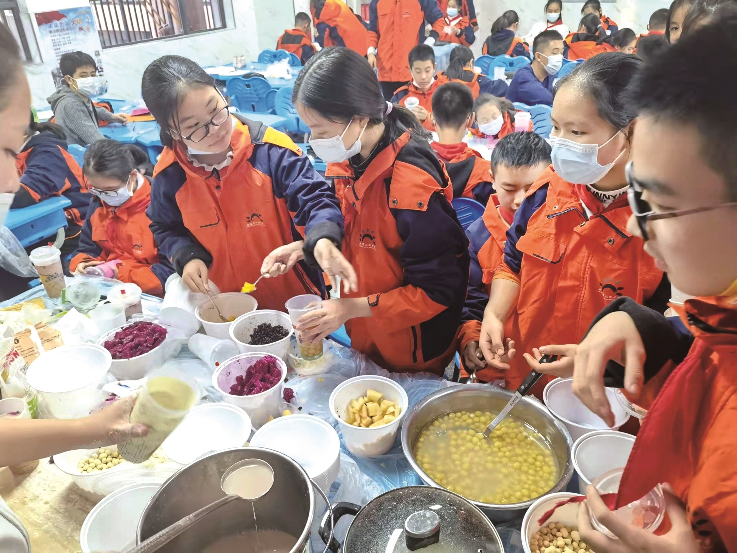 同学们在做红薯芋圆奶茶