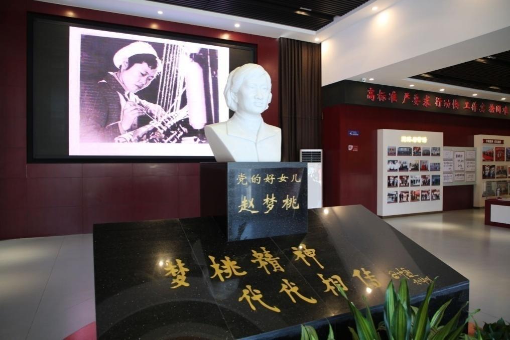 位于咸阳市西郊高新区纺织工业园的赵梦桃纪念馆,总建筑面积约500平方米,通过万余文字、1500幅图片、400多件珍贵实物及电视剧《赵梦桃》(上下集)等多部历史影像资料,充分展示了赵梦桃及赵梦桃小组的先进事迹和最美奋斗史,集中反映了咸阳纺织业发展历程和纺织工业园区建设的辉煌成就。自2017年7月17日开馆以来,目前已累计接待全国各地慕名而来的社会团体(队)、各界人士和市民群众达70000多人次。