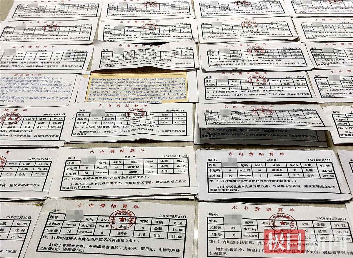 陈女士向极目新闻记者展示了2016年以来的水电费结算单,每度电的价格为0.72元,和楚兴小区一样,属于高价电费。