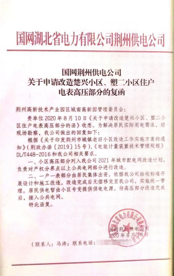 去年8月,国网荆州供电公司向荆州城南高新园复函称,已将楚兴小区、塑二小区列入该公司2021年城市配电网改造计划。得知消息的小区居民满心欢喜,可直到现在为止,两个小区的电网改造仍没有任何动工迹象。