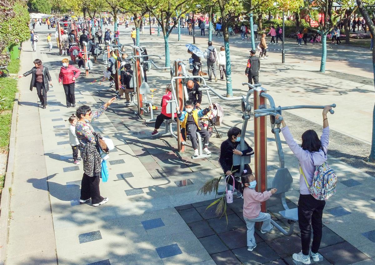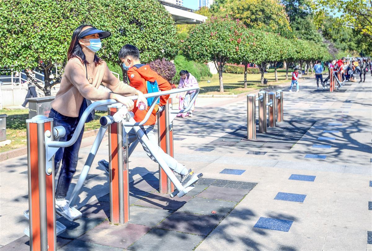 教育“双减”之后,在武汉各地公园的健身区,每到晴朗的双休、放学后的时光,就会迎来大量的孩子,这让健身器材也变得紧俏起来。各个年龄层的人在一起健身锻炼,形成了一条靓丽的风景线。