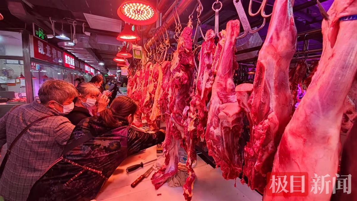 11月15日一早,极目新闻记者来到汉口秋桂街的一家生鲜大卖场,门前的空地上已经架起了几只大羊腿,还有一整块羊排铺在冷鲜柜里,不时有市民驻足选择,但最终出手购入的市民并不算多。