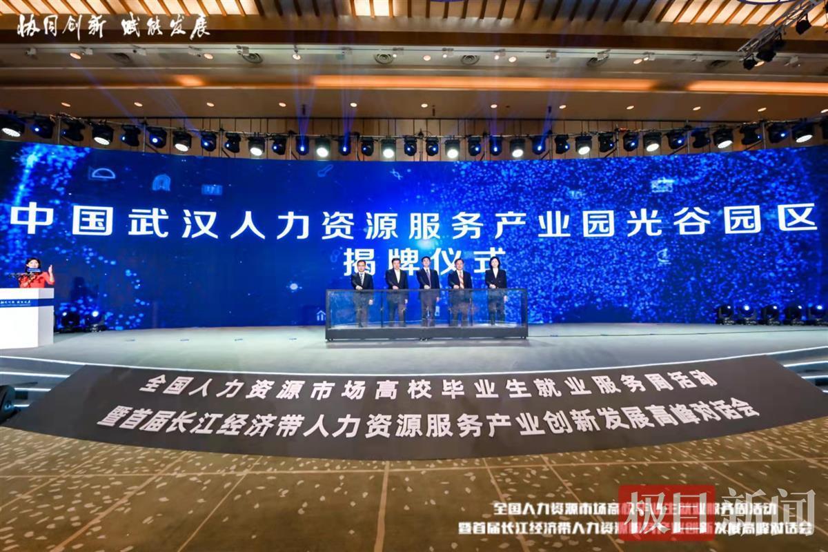 11月16日,全国人力资源市场高校毕业生就业服务周活动暨首届长江经济带人力资源服务产业创新发展高峰对话会在武汉东湖高新区举办。会上,中国武汉人力资源服务产业园光谷园区,暨中国光谷人力资源服务产业园正式揭牌。