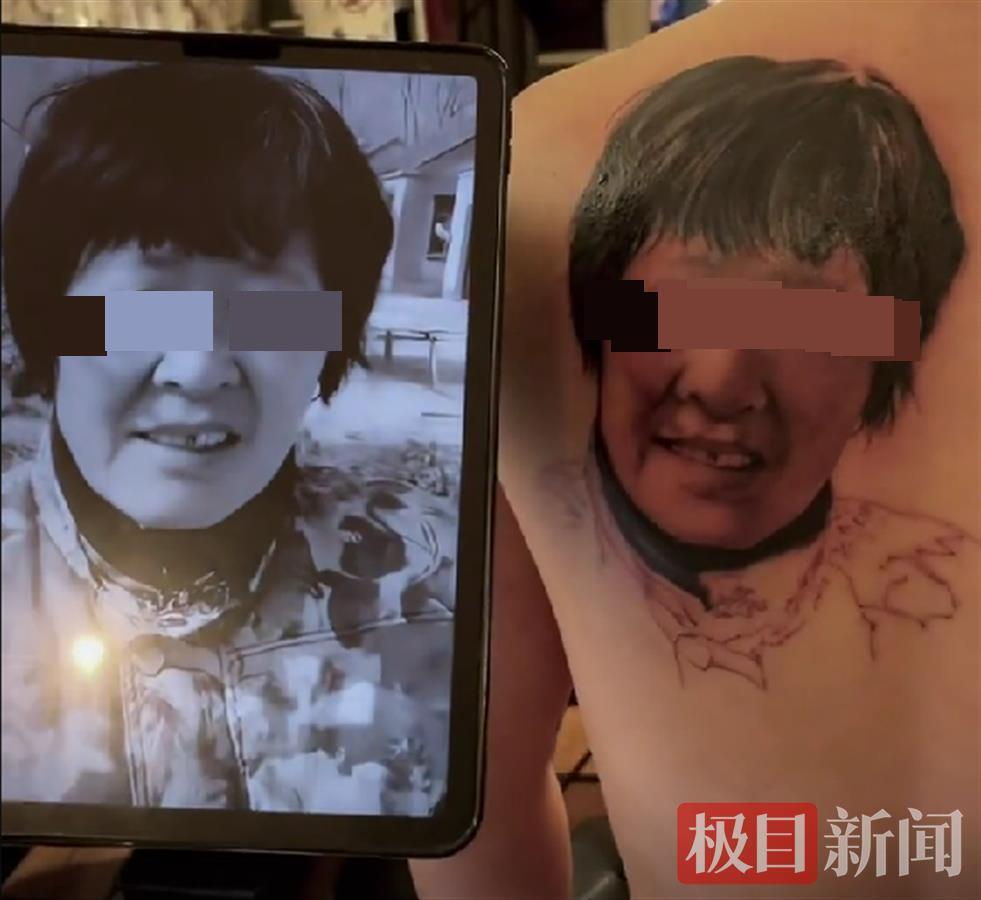 16日下午,视频拍摄者龙镶刺青纹身师张先生向极目新闻记者介绍,纹身的时间在13日晚上,“当时顾客提供了一张其母亲的彩色照片,要求纹黑白的,A4纸大小。”张先生回忆,这位顾客是一位40多岁的中年男子,母亲在一年前去世。