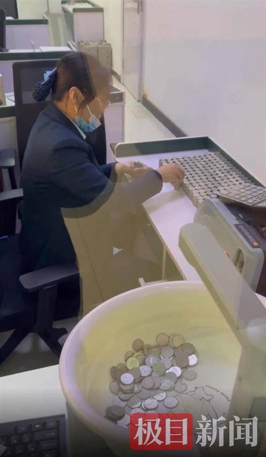 河南清丰农村商业银行马村支行的工作人员表示,蒋先生提前打电话向银行预约,他们考虑到需要避开业务高峰期,推荐其中午过来办理,几个人把硬币搬过来时看着挺沉的,在银行两位工作人员一共清点了近5000元。