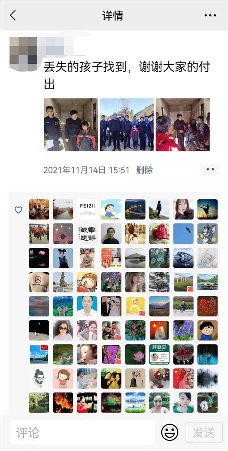 “丢失的孩子找到了,谢谢大家的付出。”11月14日下午3点51分,所长吴细秀更新了自己的朋友圈。
