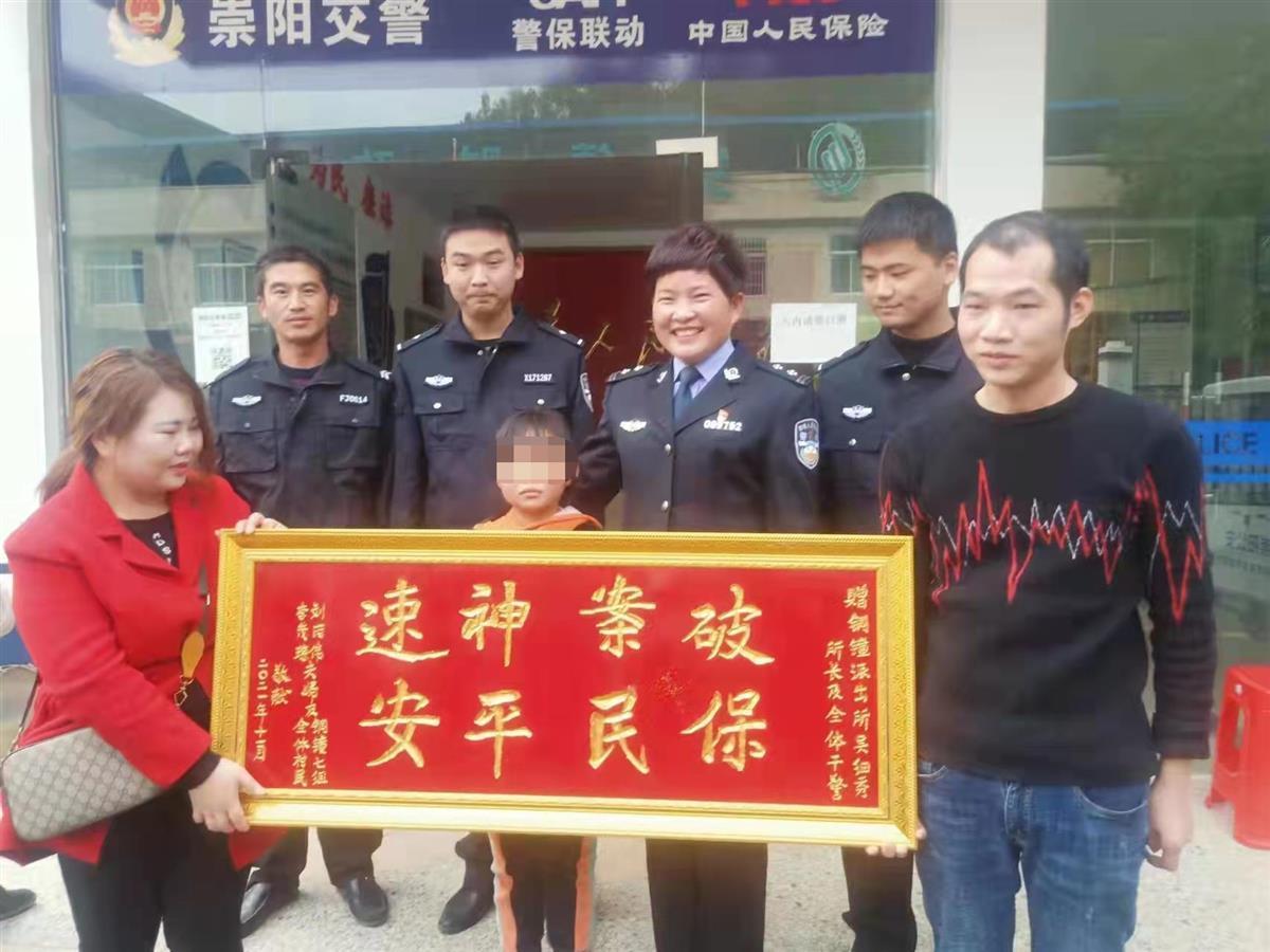 赠牌匾者正是铜钟乡铜钟村七组村民及小“晨熙”的父母,大家站在派出所门前合影留念,而吴细秀成为人群中笑得最灿烂的那一个。
