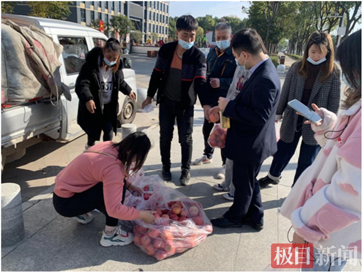 王善斌把这对来自陕西的小夫妻带到了社区服务中心,希望社区能够网开一面。社区副书记熊繁了解情况后虽然很同情他们的遭遇,但小区内禁止摆摊销售,这也让他很为难。“我灵机一动,能否在不违反规定的情况下,帮助小夫妻把苹果销出去。” 熊繁转身向办公室的同事推销起了苹果,随着大家一传十十传百,越来越多的人赶来,社区工作人员也不断在居民群、朋友圈为远道而来的苹果“打广告”。