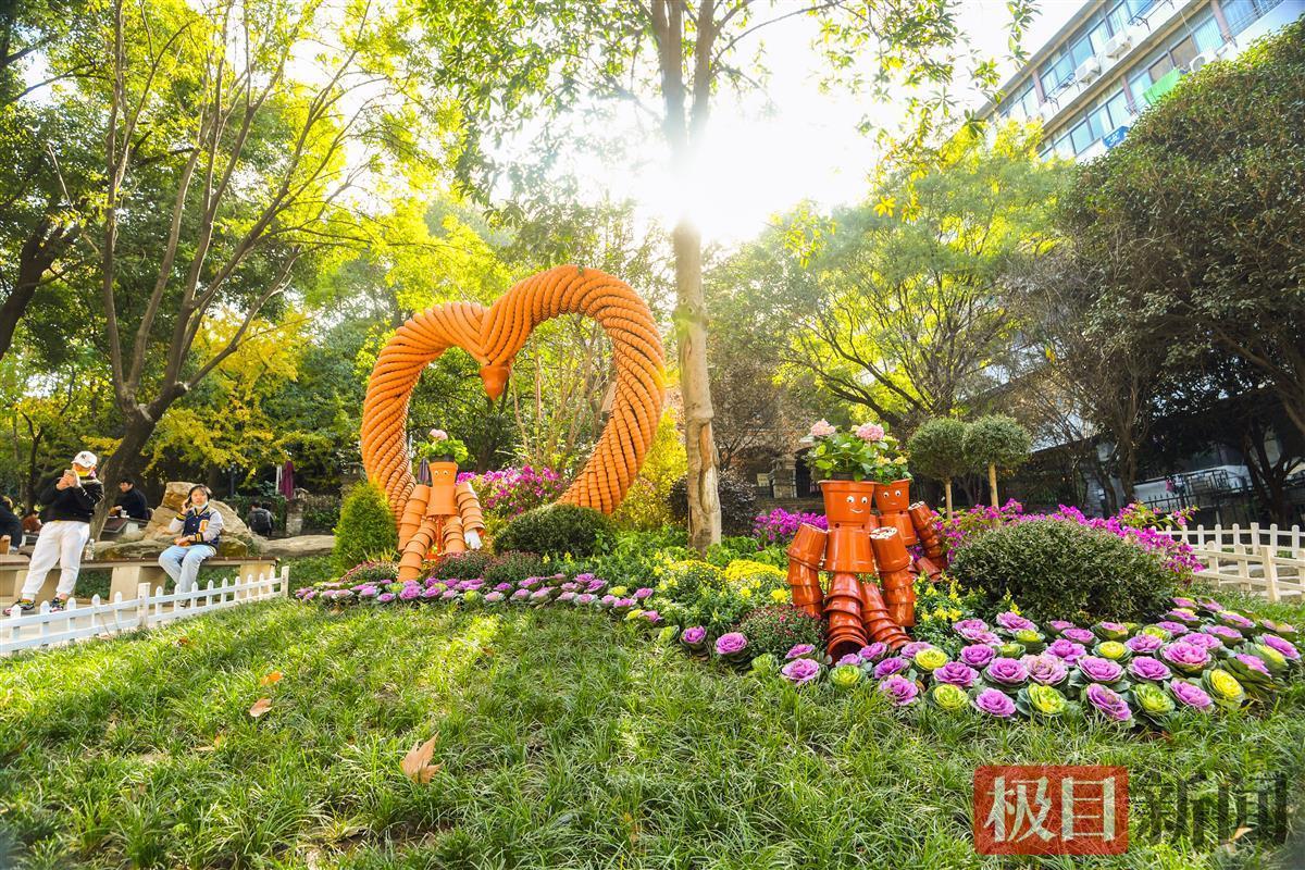 一颗温暖的爱心,醒目耀眼,还有微笑的“小孩”头顶着鲜花,走近一瞧,原来它们都是由一个个花盆编织而成的。“这就是微景观之一的‘花盆花园’。” 武汉市园林生态集团花木公司设计师柳俊介绍,这是花艺匠人手工制作而成,有温度,有浪漫。