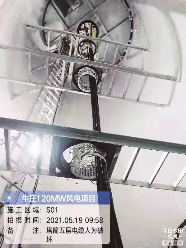 现场工人告诉民警,专业工人攀爬扶梯到风机顶部需要30分钟,非专业人员则需要一个小时,由于攀爬的扶梯很窄,稍有不慎就可能从扶梯上摔落,十分危险。民警攀爬扶梯上到每一个风机顶端,到达机舱后,受风力影响,顶部机舱一直都在摇晃,在机舱与风机塔筒中间,有十余根黑色电缆垂直引至地面,部分电缆线被人用利器割断,裸露出的铜丝清晰可见,机舱内散落少许电缆线外壳和卡扣。