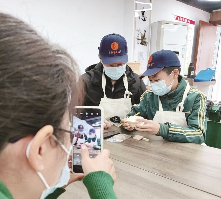 一个多小时后,一件件精美的作品呈现出来,一旁的妈妈们则不停地拍照鼓劲。