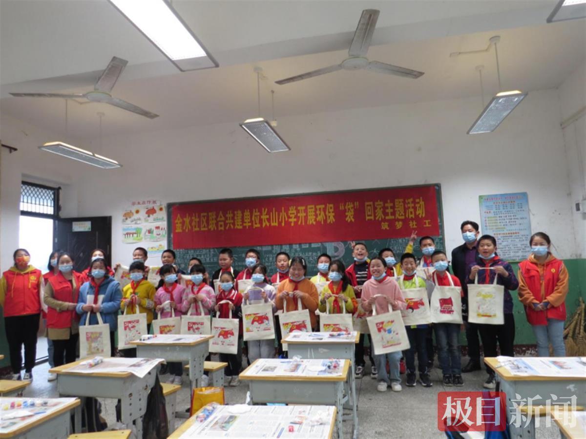 为了让垃圾分类工作落到实处、取得实效,培养未成年人垃圾分类的习惯,更为了通过小手拉大手,引起社会的广泛关注,11月12日下午2:00-3:00,江夏区金口街金水社区联合共建单位长山小学,在长山小学五年级教室开展了“环保‘袋’回家”的主题活动,约30名社区工作者、社工、师生参加了活动。