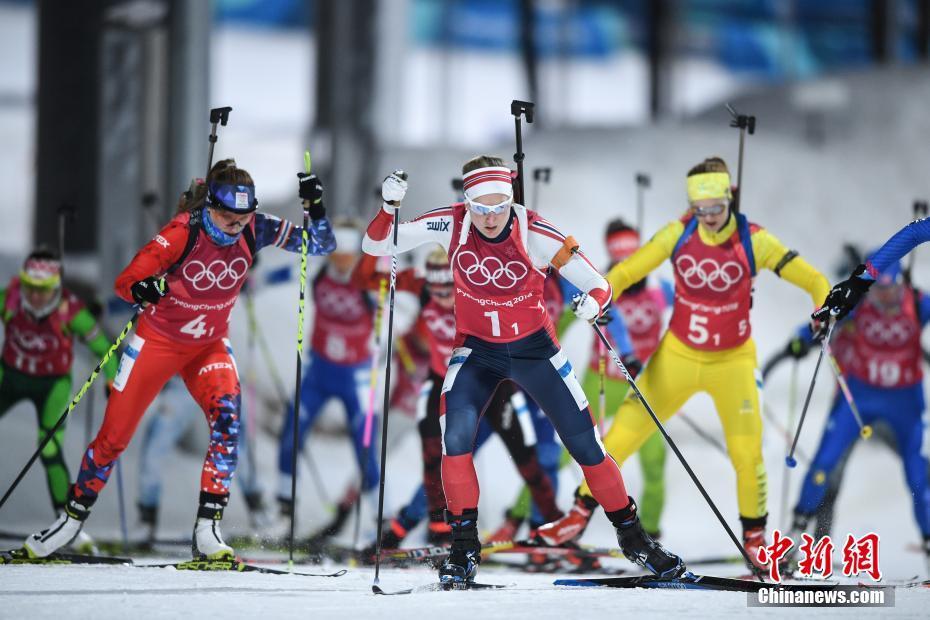 资料图:2月20日,2018平昌冬奥会冬季两项2x6公里女子 2x7.5km男子混合接力比赛落幕。法国队夺得金牌,挪威获银牌,意大利最后冲刺阶段以0.3秒优势力挫德国获得铜牌。图为选手们在比赛中。 中新社记者 崔楠 摄