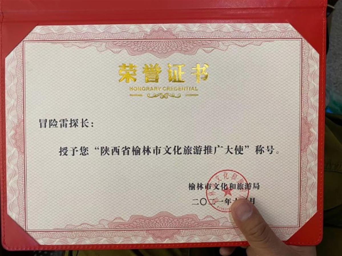 “冒险雷探长”获得“陕西省榆林市文化旅游推广大使”称号