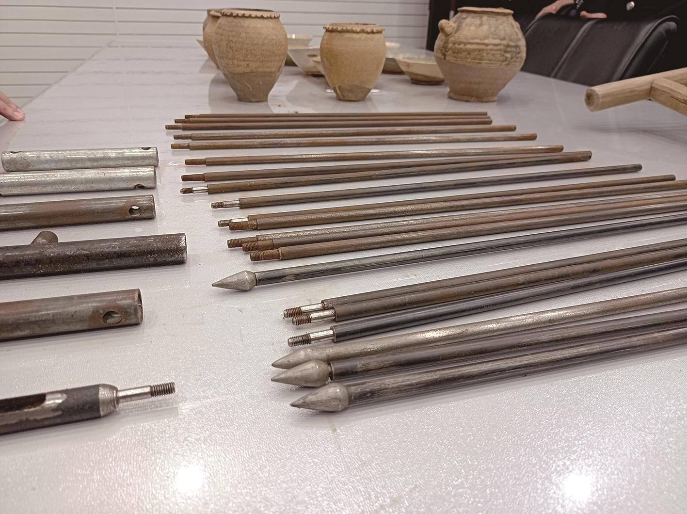 新闻通气会现场,罗田警方展示了部分被盗宋代文物和作案工具。黄兴华介绍,这些陶瓷文物看似不起眼,但据犯罪分子交代,品相好的在“黑市”上单个可以卖到万元。