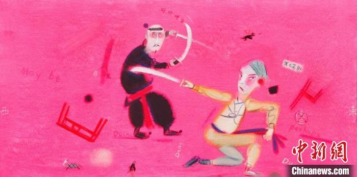 二等奖获得者是来自广西南宁的岳帅,其系列作品《他与他的夜晚旅程》从中华传统文化中汲取灵感,用插画演绎了传统京剧短打武生剧目《三岔口》的故事。作品中的夜晚不只是黑色的,随着主角打斗日趋激烈以及最终误会的消解,夜晚的背景色幻化为热烈的红色和跳跃的粉色,使得作品叙事更加立体丰富。