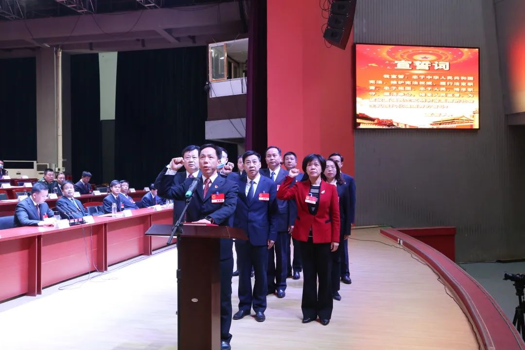 闭幕会上,新当选的市人大常委会主任黄汉桥,副主任王长华、陈国姣、周忠厚、漆兆华、孙向阳、李学文,市政府市长戴少平,副市长肖艳霞、鞠鹏程、涂磊、熊淑红、袁冲、黄国华、余志平先后进行了庄严的宪法宣誓。