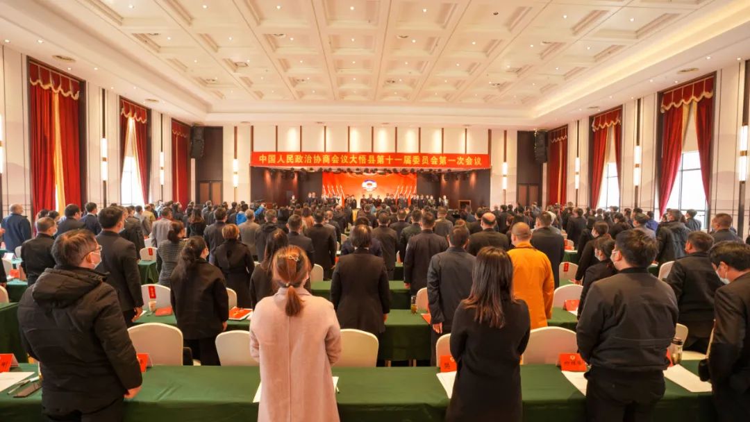 在圆满完成大会各项议程后,政协大悟县十一届一次会议在雄壮的国歌声中胜利闭幕。