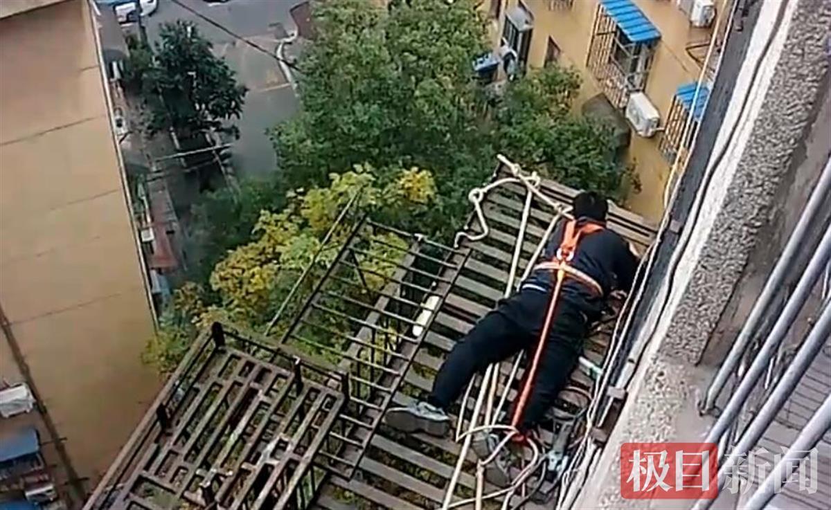 日前,武汉市江岸区永清街道综合执法中心接到群众投诉,反映辖区内仁义社区5栋一单元有人违建吊脚楼种花养狗,存在安全隐患。接警后,中心执法人员第一时间到进行现场勘验检查。经多方调查,认定此违法建设为钢混结构,面积多达20余平方米,悬吊在20多米的高空,且形成年代久远,腐蚀生锈,破败不堪,严重危及人口稠密的老旧小区居民的生命财产安全。