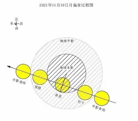 2021年11月19日月偏食过程图 (图源:紫金山天文台)