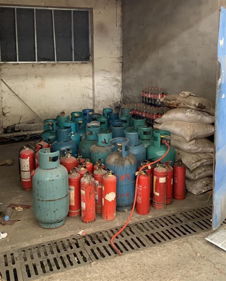 当天上午11时,狮子山街道综合执法中心、洪山区城管执法局燃管站的执法人员勘察了现场,该平房内共存放各类液化石油气钢瓶24只,其中4只14.5公斤钢瓶还有余气,2只二维码信息不全,房屋内外没有公示燃气经营证件,且无人看护,属于非法存储液化石油气钢瓶,存在极大的安全隐患。执法人员当即联系专业部门将钢瓶转移至安全地点储存。