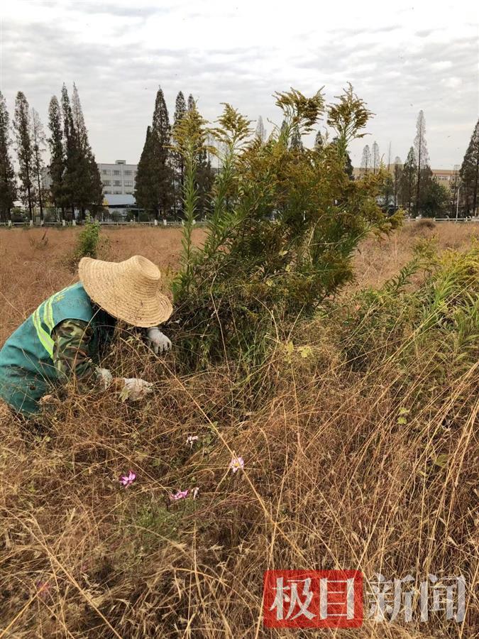 11月19日,在武汉市东西湖区慈惠街主次干道、绿化区域、农田以及荒地忙碌着园林工作人员的身影,他们正全面仔细排查“加拿大一枝黄花”。