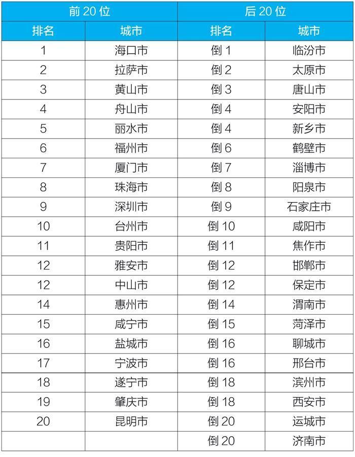 1-10月168个重点城市空气质量排名前20位和后20位城市名单